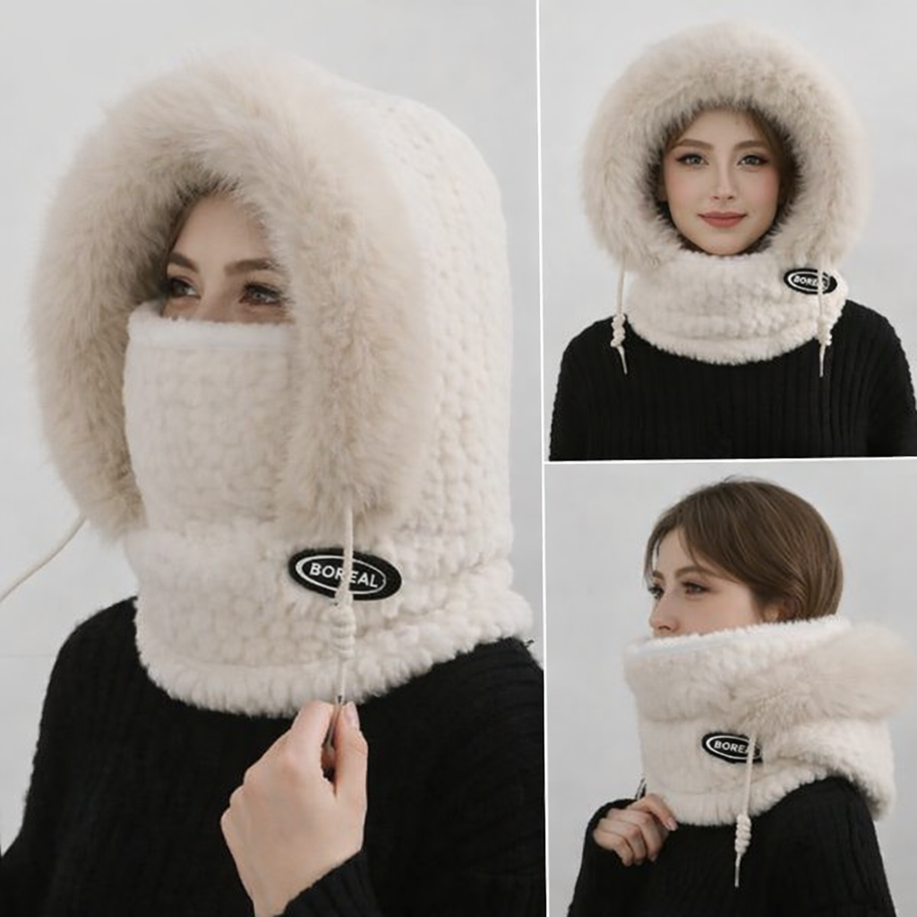 Système 3-en-1 unique : bonnet, écharpe et masque intégrés en peluche ultra-chaude